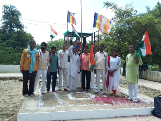 Varanasi, 15 August 2025 – Independence Day was celebrated with great zeal at Ambedkar Park, Kashiram Awas, and Pakki Bazar Anganwadi, Golghar. Both programs began with the flag hoisting and national anthem, followed by floral tributes to Dr. B.R. Ambedkar and patriotic addresses by community leaders, youth, and children.